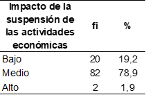 Como producto del análisis de sus frecuencias, el 79,8 % de los empresarios de las MYPES percibieron que las medidas de distanciamiento social empleadas por el Estado para frenar el avance de la COVID-19 impactaron sobre su actividad económica (ver Tabla 5).