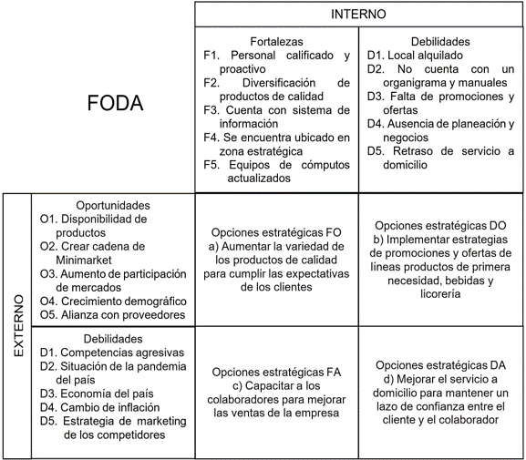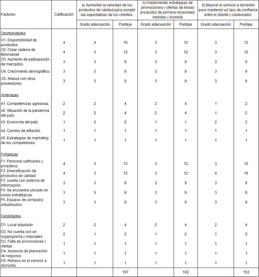 Tabla 2 Matriz de evaluación de opciones estratégicas de Minimarket Minisol