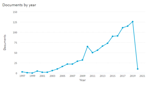Una vez realizada la búsqueda de información en la base de datos Scopus, con la ecuación de búsqueda anteriormente presentada, se obtuvieron un total de 1003 resultados, entre los años 1997 y 2020.