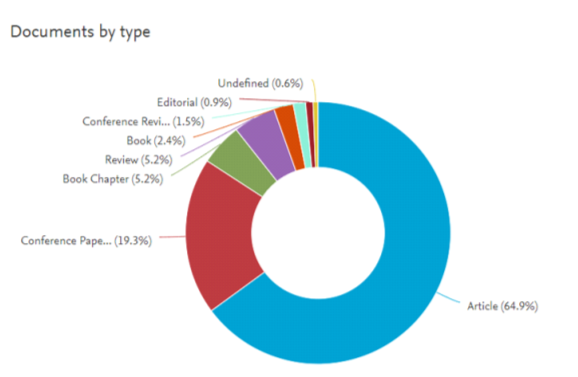La figura permite observar que los principales tipos de publicaciones académicas que fueron desarrolladas en relación con la temática han sido los artículos académicos y los papers de conferencias. De lo cual se deduce que estas representan las principales fuentes de consulta de información en relación con la temática, al momento de querer profundizar en la misma.
