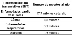 Tabla 1. Número de muertes al año por ENT según la OMS