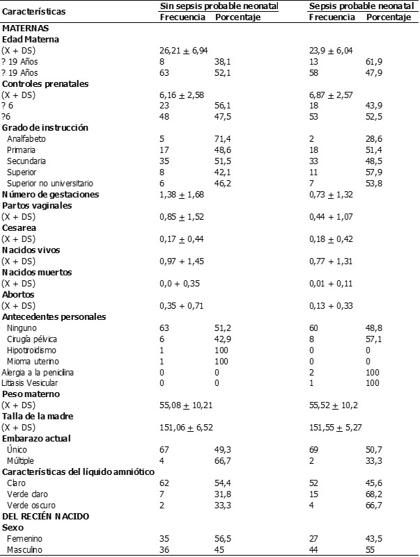 Los controles fueron tomados del mismo servicio tomando en cuenta la presencia de los factores en estudio que no presentaban el diagnóstico de sepsis neonatal probable temprana.