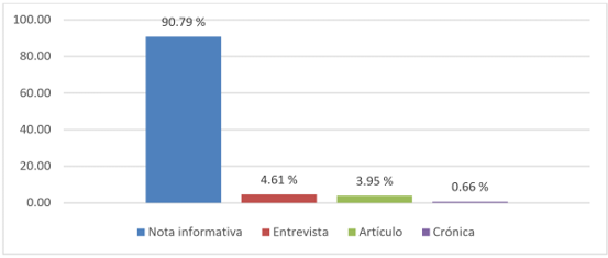 Figura 1 El género en el que se presenta las noticias en los periódicos de la muestra